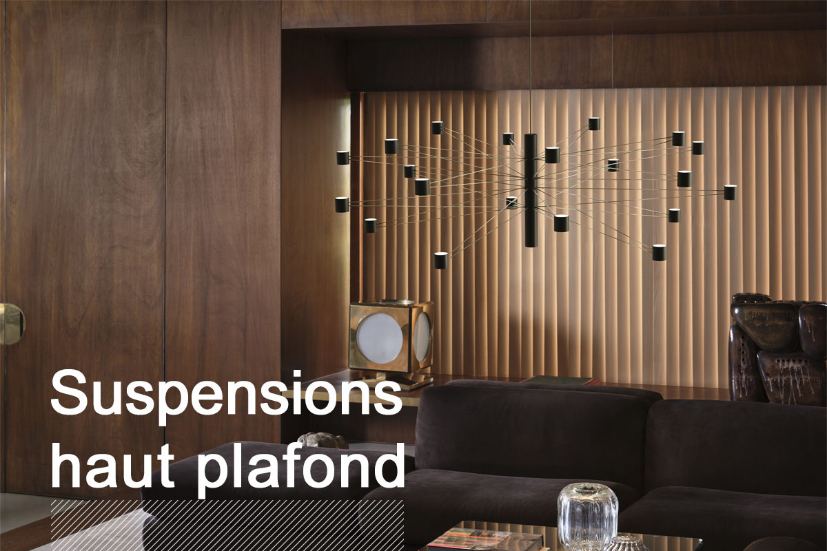 L'éclairage d'un grand volume demande une attention particulière : nos suspensions, lustres et plafonniers s'adaptent parfaitement à ces espaces, offrant à la fois une luminosité puissante et un design spectaculaire.