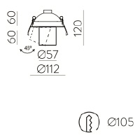 Dimensions (cm) : Ø11,2 x 6 - Diamètre d'encastrement : 10,5 cm - Profondeur d'encastrement : 6 cm.