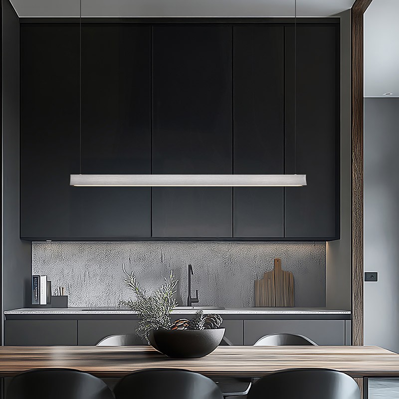 Conçue pour s'intégrer parfaitement au-dessus d'une table de salle à manger, d'un îlot de cuisine ou d'un bureau, son design linéaire et minimaliste offrira un éclairage direct élégant.