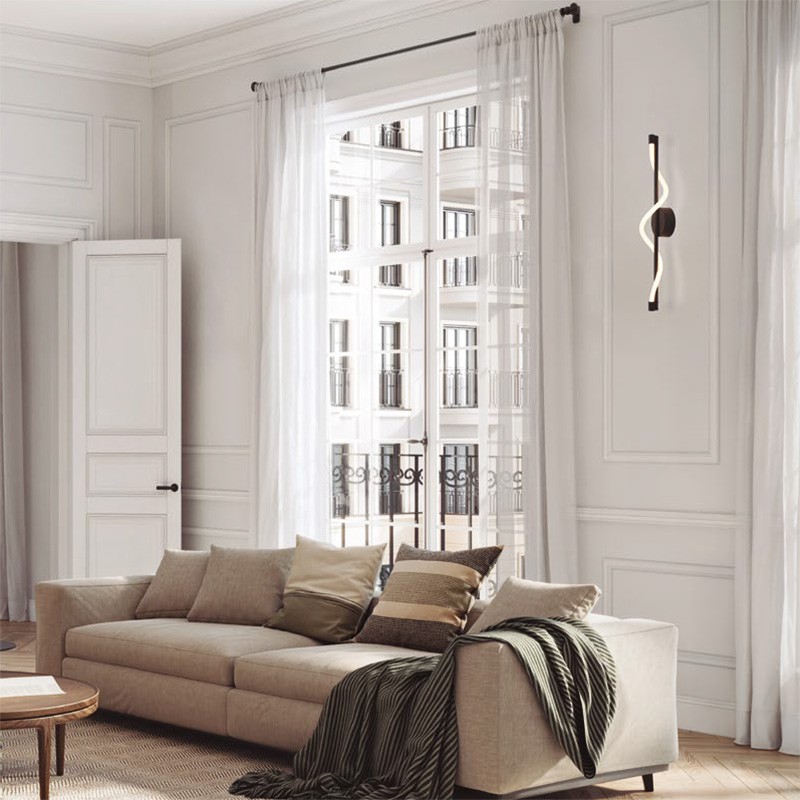 Son design vertical, élancé est traversé par un ruban lumineux en spirale captivant, évoquant un mouvement fluide et dynamique sur votre mur.