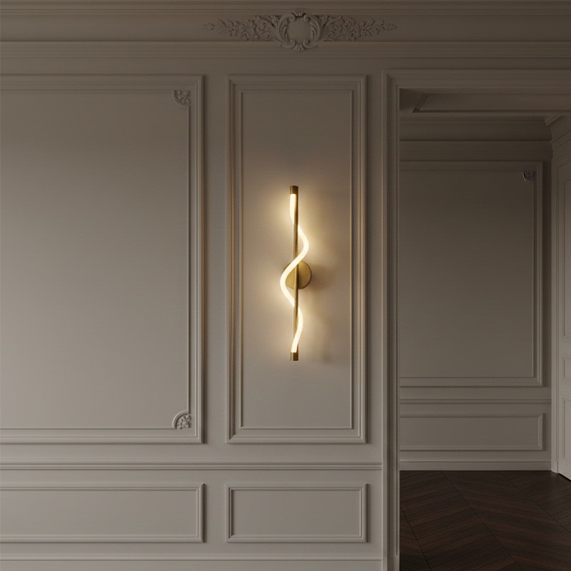 Son design vertical, élancé est traversé par un ruban lumineux en spirale captivant, évoquant un mouvement fluide et dynamique sur votre mur.