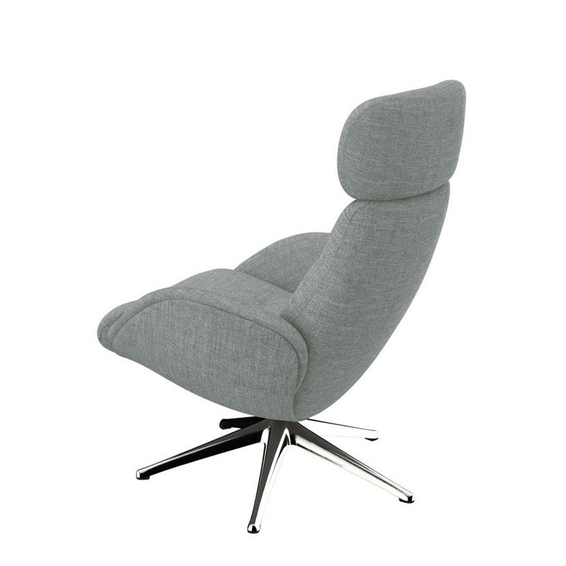 Reposant sur un pied central en étoile chromé mat, moderne et élégant, ce fauteuil offre une liberté de mouvement et une rotation à 360°, idéal pour les espaces de vie ou les bureaux.