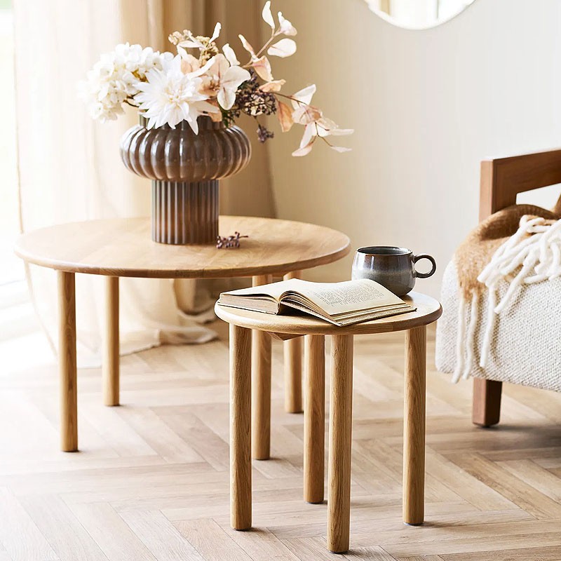 En version D70 cm, elle sera parfaite comme table basse centrale dans un petit salon ou en duo "gigogne" avec le petit modèle.