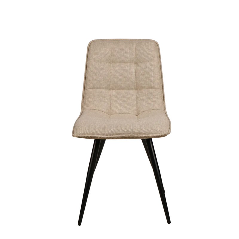 Quatre pieds en métal noir aux finitions mates, disposés en "compas", assurent une stabilité parfaite tout en affinant la silhouette de la chaise.