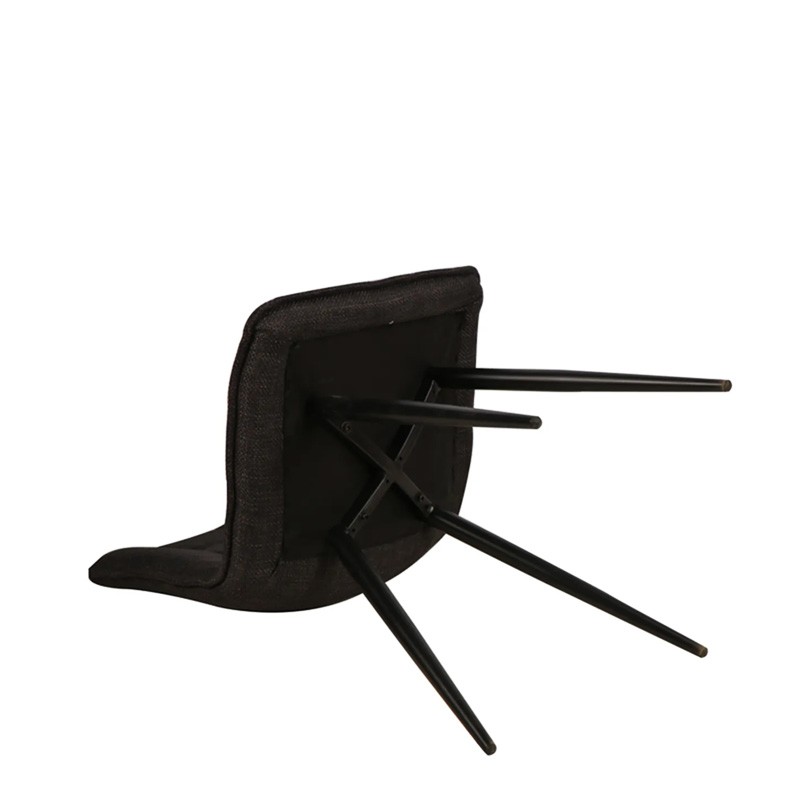 Quatre pieds en métal noir aux finitions mates, disposés en "compas", assurent une stabilité parfaite tout en affinant la silhouette de la chaise.