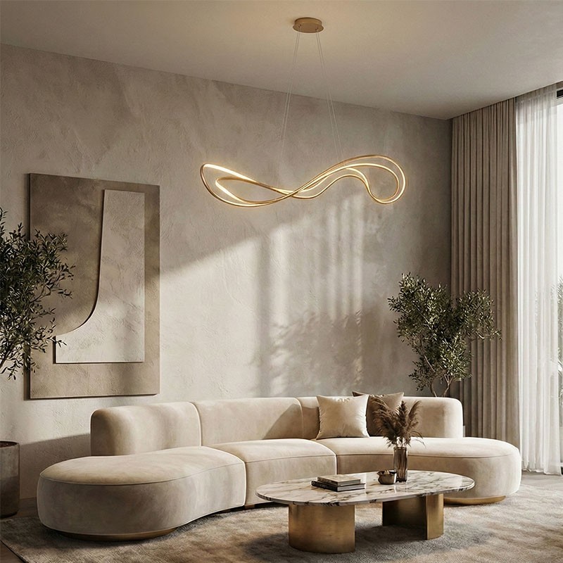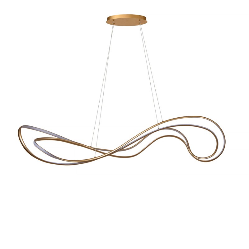 Avec ses courbes fluides et son fini or mat, elle apportera une touche de luxe raffiné au-dessus d'une table à manger ou dans un salon spacieux.