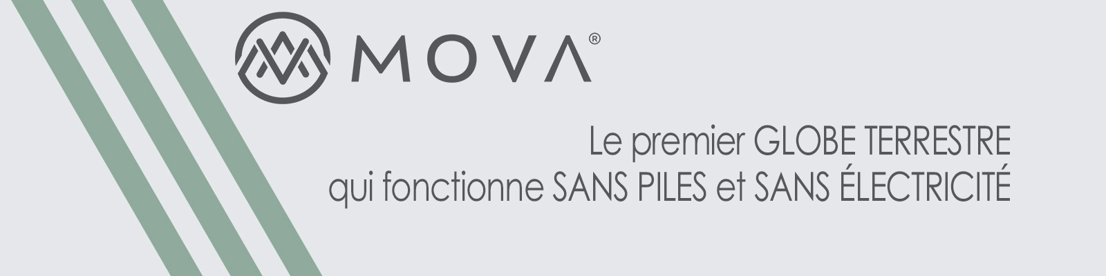 Les globes MOVA pivotent sans besoin de piles grâce à une technologie innovante. Chaque globe est une sphère stable renfermant un globe intérieur en mouvement.